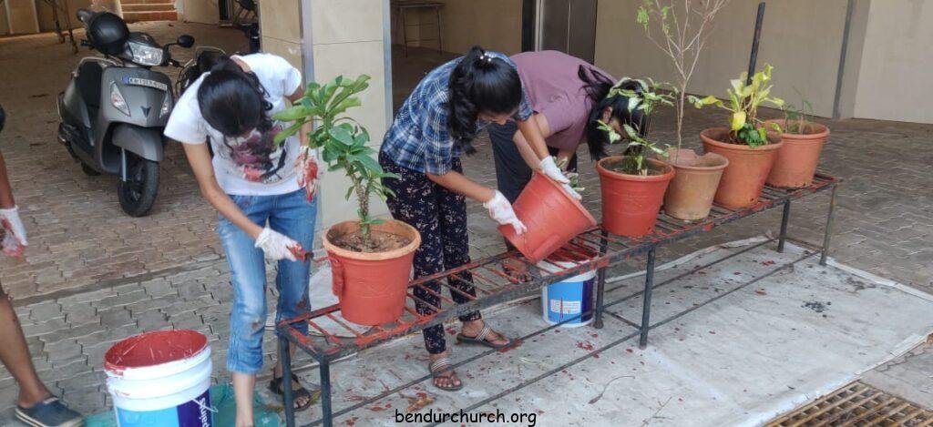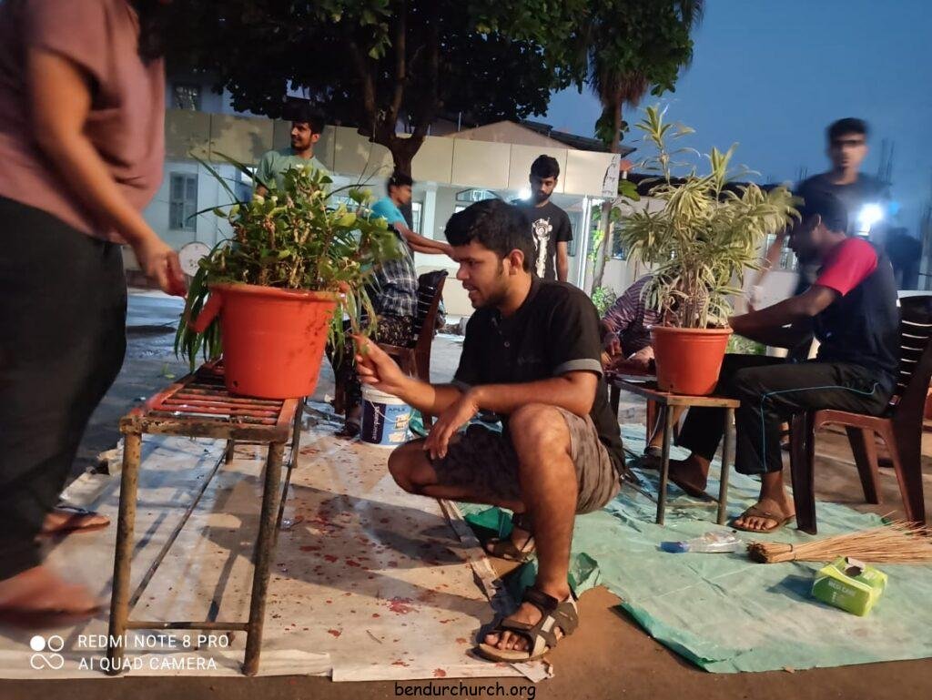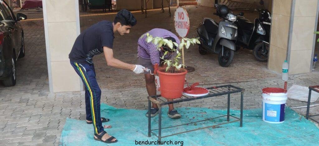Catholic Action League, with the guidance of Director V. Rev. Fr Vincent Monteiro, Assistant Director Fr Ashwin Crasta and Animator Mr Vinod D’souza, under the leadership of President Lynal Lewis, took up the initiative of washing and painting of the pots in the church.On 16th December 2020, the CAL members began by washing all the pots and left them to dry overnight. The following day, the painting of all the pots were done. There were over 250 pots that were repainted by the members.