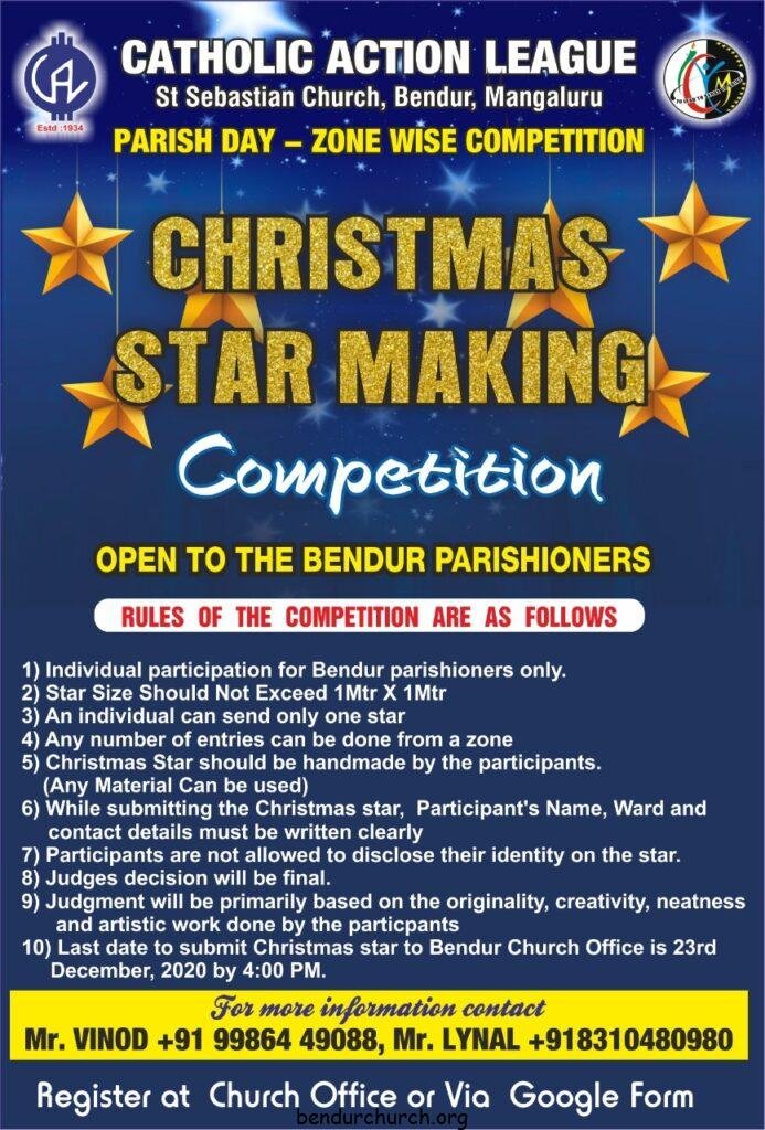 10) Last date to submit Christmas star to Bendur Church Office is 23rd December, 2020 by 4:00 PM.