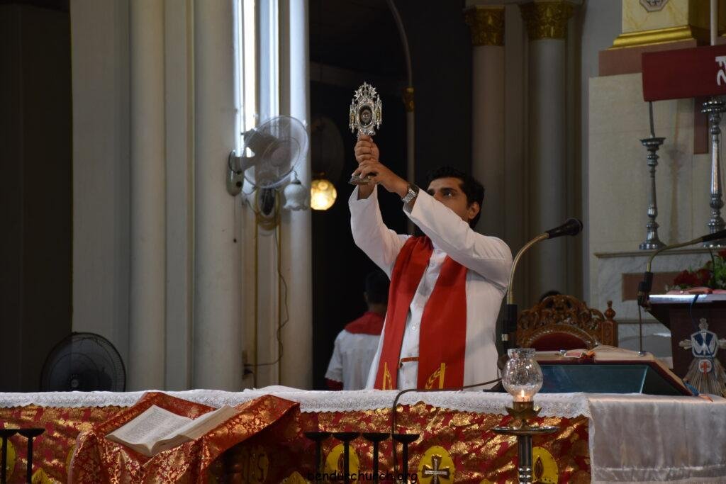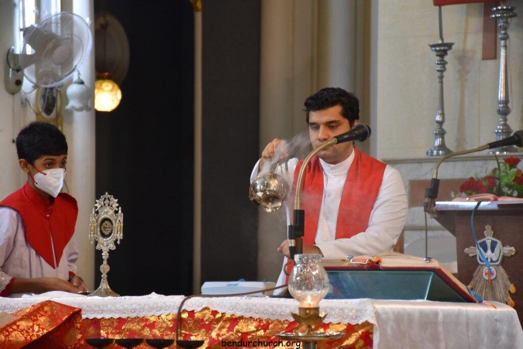 25th August, day 4 of spiritual renewal, the Holy Eucharist was celebrated by Rev.Fr. Santhosh Rodrigues with a meaningful Homily on the theme “Serve the Lord Service in the community”. After the Mass, the Novena was led by Rev. Fr. Ronson Pinto. It concluded with the exposition of the Relic of St. Sebastian and the final hymn.