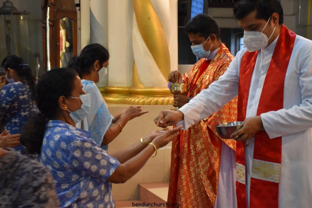 26th August, day 5 of spiritual renewal, the Holy Eucharist was celebrated by Rev.Fr. Leo Lasrado with a meaningful Homily with the theme “There is more joy in sharing our wealth with the people those who are in need”.All things belong to God, we are only the stewards on this earth. All we can share on earth is God-given time, talents, and treasure. Mass was followed by Novena was led by Rev. Fr. Ashwin Crasta. It concluded with the exposition of the Relic of St. Sebastian and the final hymn.