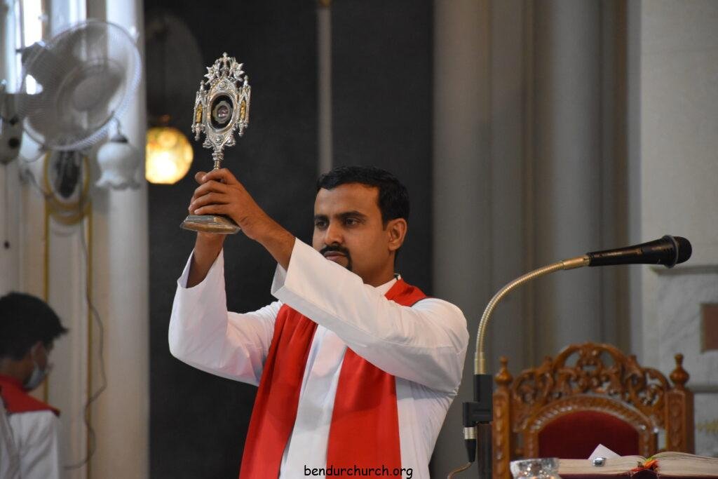 26th August, day 5 of spiritual renewal, the Holy Eucharist was celebrated by Rev.Fr. Leo Lasrado with a meaningful Homily with the theme “There is more joy in sharing our wealth with the people those who are in need”.All things belong to God, we are only the stewards on this earth. All we can share on earth is God-given time, talents, and treasure. Mass was followed by Novena was led by Rev. Fr. Ashwin Crasta. It concluded with the exposition of the Relic of St. Sebastian and the final hymn.