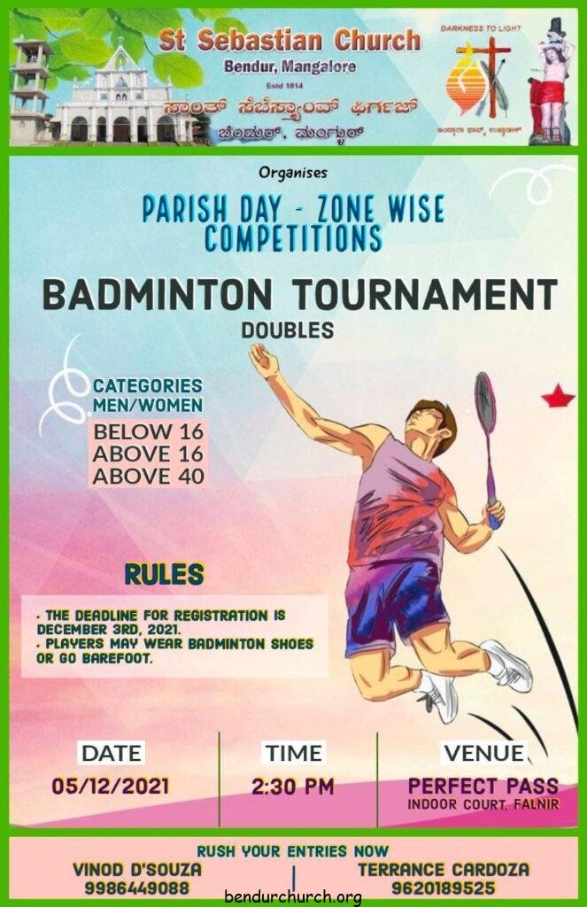 Bendur Parishioners participated in the Parish Day Badminton Tournament. The below were the participants in the various age groups.