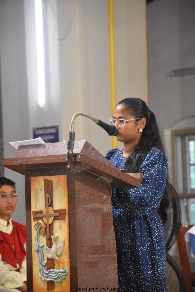 ambience. Melreena Sequeira (9th Std) welcomed the priests, teachers, parents, and children.