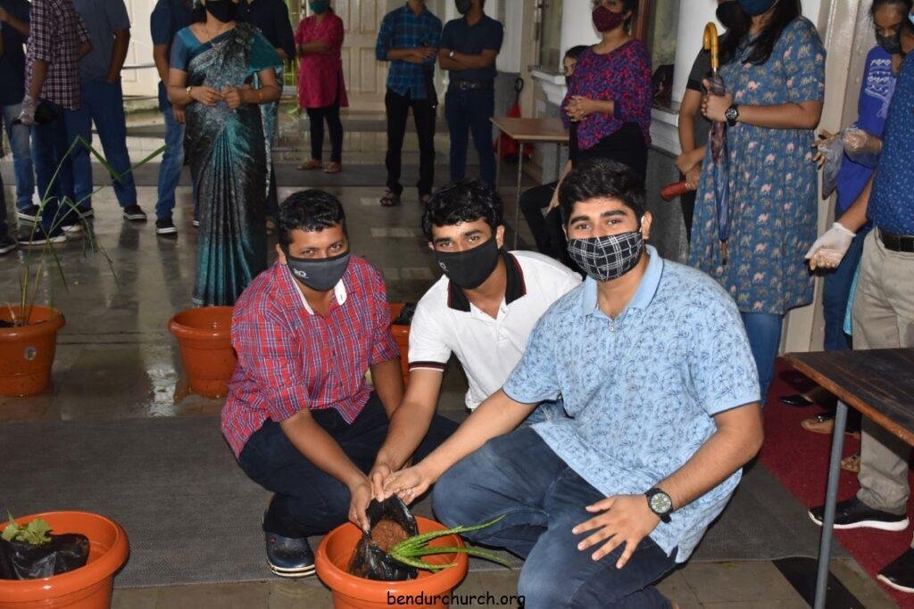 St Sebastian church Bendur, celebrated the youth Sunday today. After the holy mass at 8.00am, the church sanitization work was carried out by the CAL & YCS members. Few medicinal saplings such as bush pepper, sour sop, beetle, tulsi, aloevera, lemon grass, long pepper(tippalige) were planted. A special selfie, by maintaining social distancing was clicked, followed by refreshments. We are grateful to our youth who are rendering their service as covid-19 Safety committee members at the church.