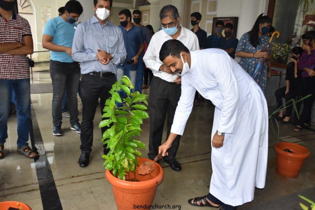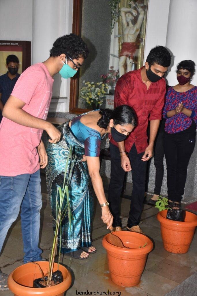 St Sebastian church Bendur, celebrated the youth Sunday today. After the holy mass at 8.00am, the church sanitization work was carried out by the CAL & YCS members. Few medicinal saplings such as bush pepper, sour sop, beetle, tulsi, aloevera, lemon grass, long pepper(tippalige) were planted. A special selfie, by maintaining social distancing was clicked, followed by refreshments. We are grateful to our youth who are rendering their service as covid-19 Safety committee members at the church.