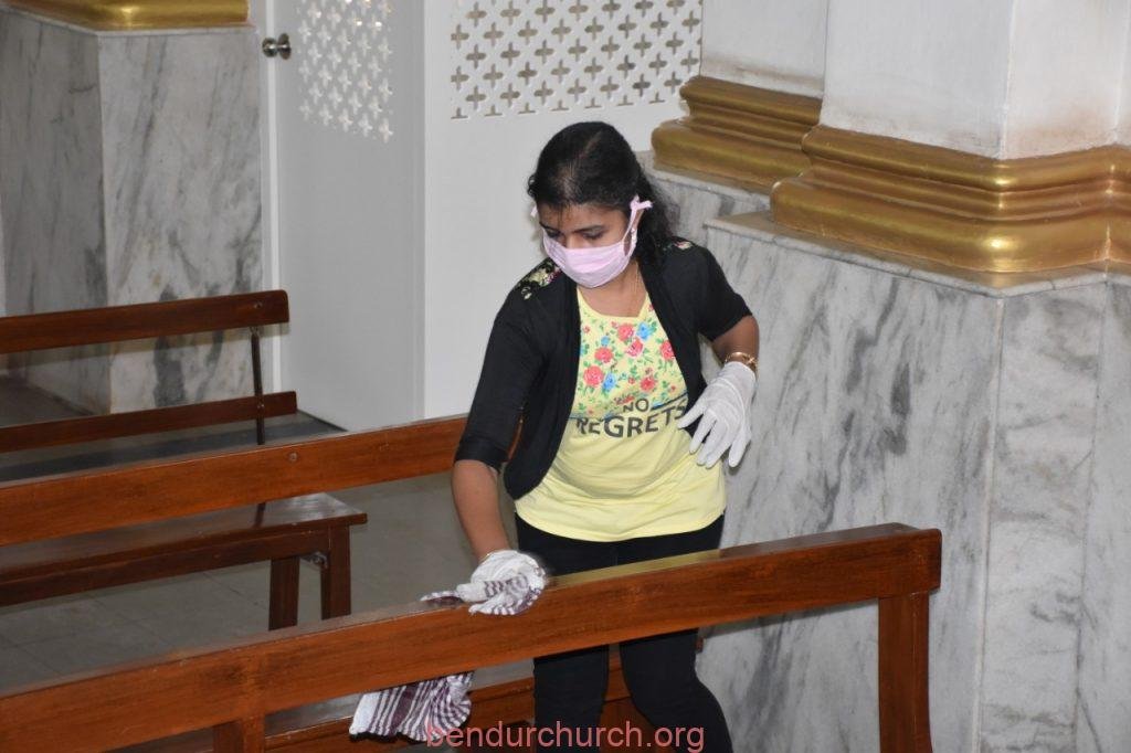 All precautions were put in place for the safety of the people attending the Mass. Adhering to the govt guidelines all the preacuations like sanitizing the benches thermal scan, face mask, social distancing were strictly followed All this was possible due to the detailed planning and hard work put in by the Parish Priest, the Covid19 Safety Committee and the volunteers who worked round the clock to make this possible. The cooperation of the congregation was commendable . We are indebted to all the religious sisters of our parish for their support. May God shower His choicest blessings on all of them.