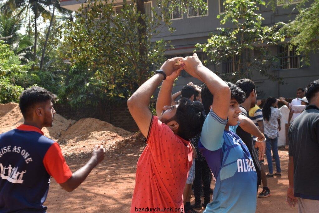 Sports day for the CAL and YCS members was held on Sunday, 27 December, at the church ground. The programme began with a prayer song led by the YCS and CAL members. Mrs. Anita Frank, the animator of YCS welcomed the gathering. Following which, the vicar, V. Rev. Fr Vincent Monterio gave his message. The Asst. director of YCS, Fr Nelson Peris, Asst. director of CAL, Fr Ashwin Crasta, Vice president of the parish council Mr. Stephen Pinto and secretary, Mrs. Mavis Rodrigues were present. Sr. Janet AC, the YCS animator delivered the vote of thanks. Mr. Vinod D’Souza, CAL animator compered the programme. The first event was YCS vs CAL cricket match for boys, which was won by CAL. Next was dodgeball for the girls, which was won by YCS. Following this all the members were divided into 6 groups in which they would be playing the rest of the games. The next game was obstacle race which was played in a group. Many other fun games such as quiz about the parish, flour and sponge games were conducted. The programme ended with baila. Mrs.Asha, Mr.Nelson, Ms Priyanka, Roysten and Sr Nishmitha helped with volunteering. Breakfast and lunch prepared by Mrs Mavis Rodrigues, Mrs Suhasini and team, was served to all the members.