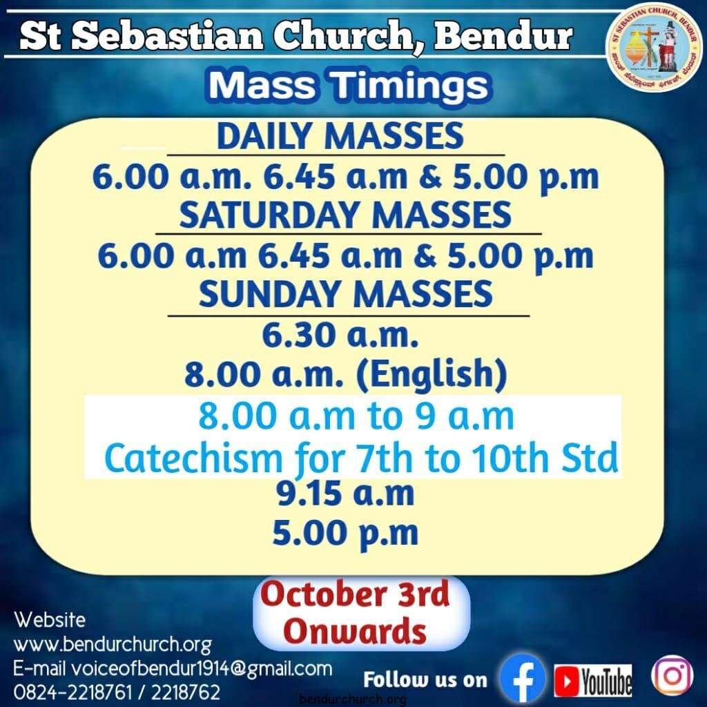 Updated – Liturgical Mass Timings 3rd Oct onwards
